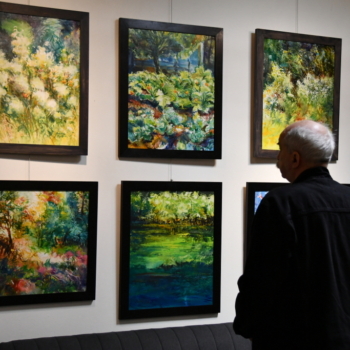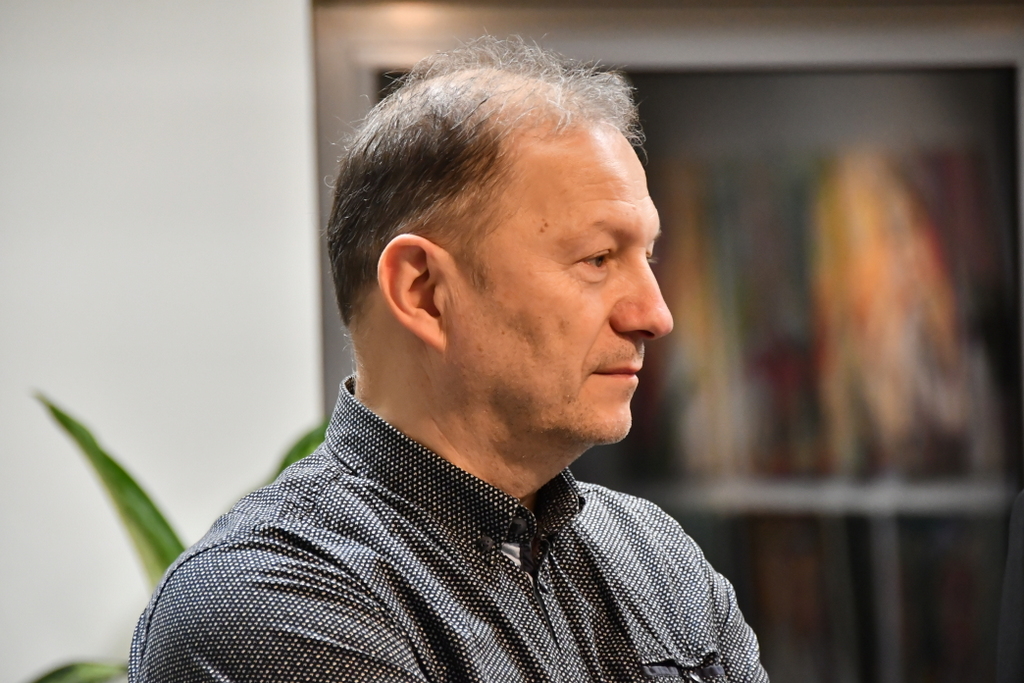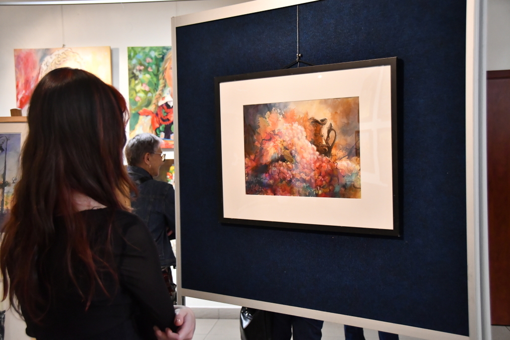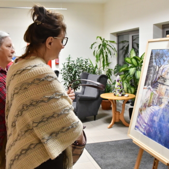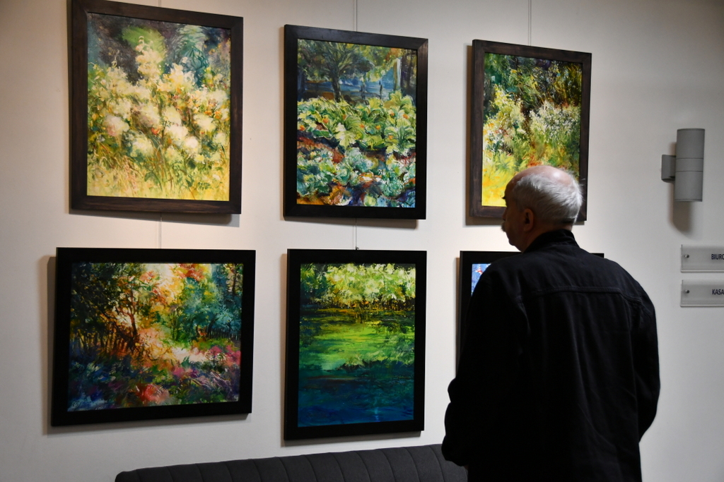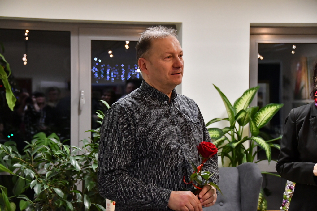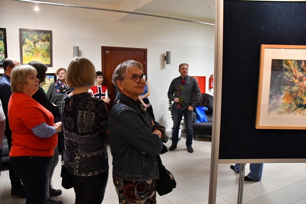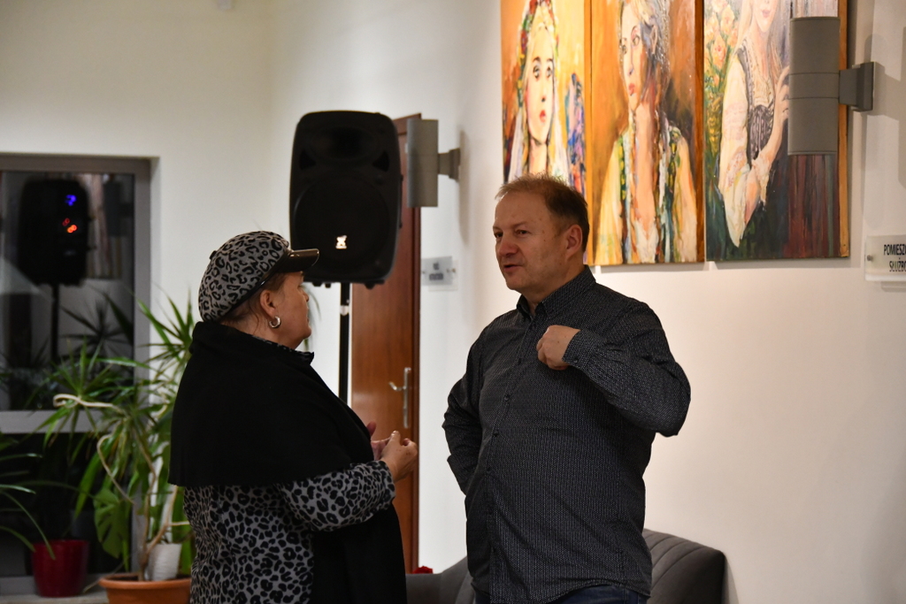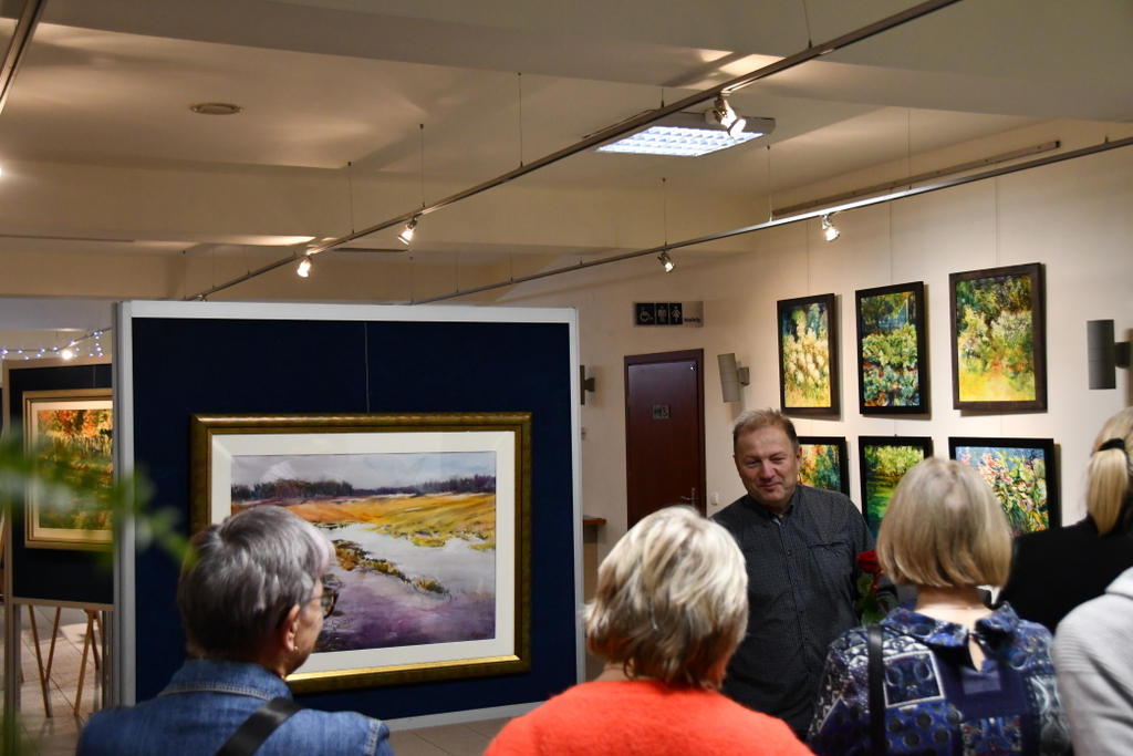 Jarosław Drążek opowiadał o swojej pasji do malarstwa wodnego, inspiracjach czerpanych z natury i procesie twórczym, który – jak podkreśla – jest dla niego nieustannym dialogiem z kolorem i światłem. Publiczność chętnie zadawała pytania, a rozmowy przeciągały się w swobodnej, ciepłej atmosferze.