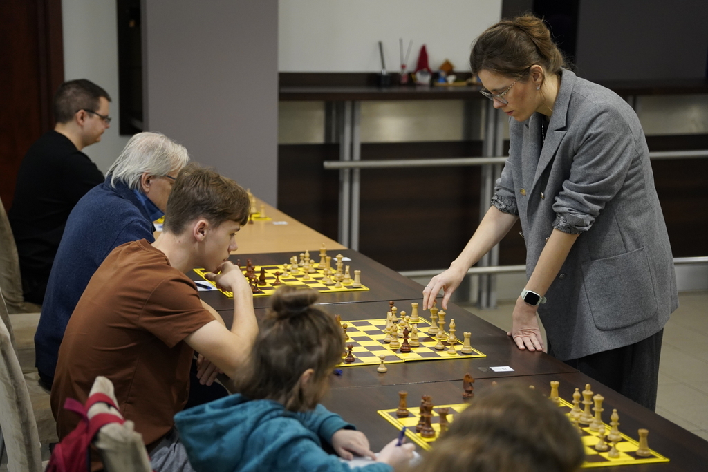 Za nami trzy godziny intensywnej, pełnej emocji rywalizacji szachowej z udziałem arcymistrzyni Marty Bartel. Uczestnicy pokazali ogromne skupienie, strategiczne myślenie i prawdziwą pasję do królewskiej gry.
