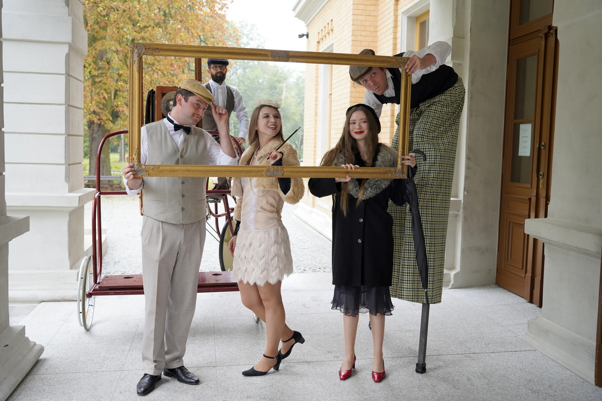 Goście mogli poczuć klimat dawnych czasów, zanim jeszcze weszli do budynku. Przed Kasynem witali ich animatorzy w strojach z początku lat 20-tych minionego wieku, oferujący fotografie, możliwość zagrania w filmie, a nawet niecodzienną przejażdżkę zabytkowym rowerem. I na dokładkę… szczudlarz rozdający gazetki z najbliższymi wydarzeniami w NOK. Retro atrakcje przyciągały uwagę młodszych i dorosłych uczestników wydarzenia.