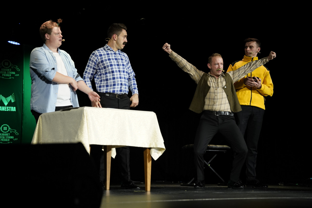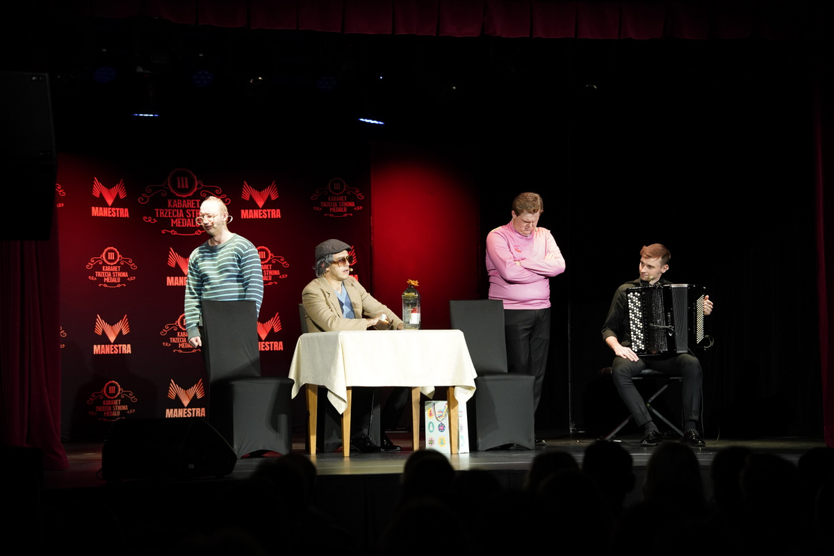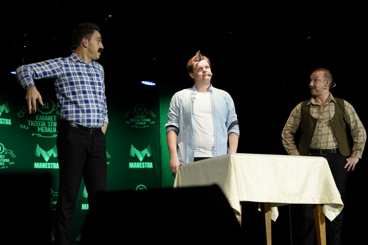 Panowie z Trzeciej Strony Medalu (Marek Gajewski, Wojciech Smyk, Łukasz Adamus i Szczepan Szubzda) pokazali, że codzienne absurdy potrafią rozbawić do łez! Bohaterką „drugiego planu” została pani Monika z Kamienicy, do której komicy wielokrotnie wracali w swoich skeczach, tworząc z niej niemal piątą członkinię kabaretu.