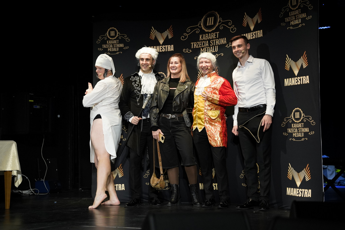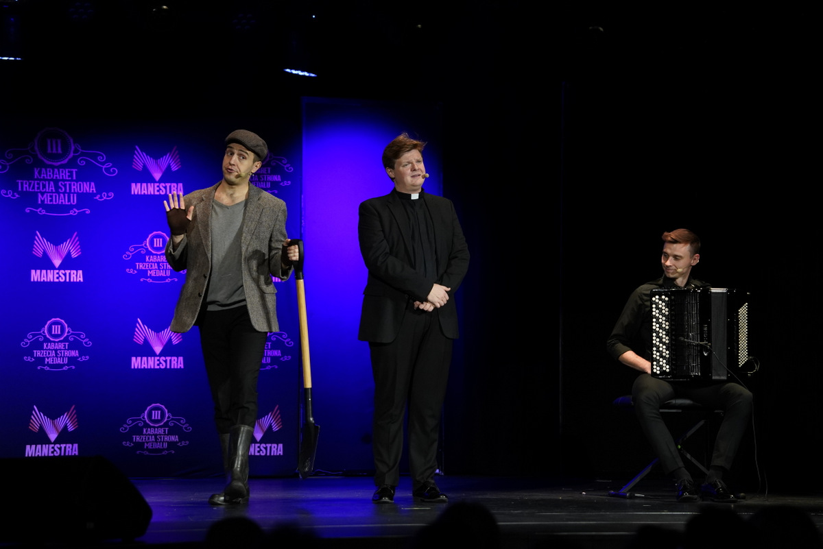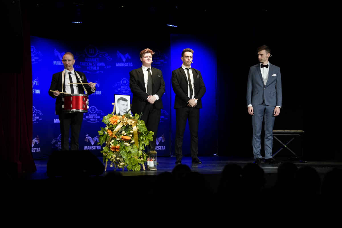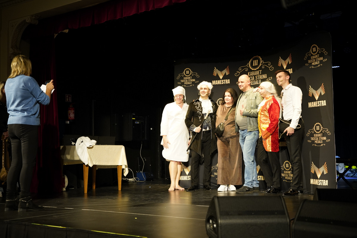 Panowie z Trzeciej Strony Medalu (Marek Gajewski, Wojciech Smyk, Łukasz Adamus i Szczepan Szubzda) pokazali, że codzienne absurdy potrafią rozbawić do łez! Bohaterką „drugiego planu” została pani Monika z Kamienicy, do której komicy wielokrotnie wracali w swoich skeczach, tworząc z niej niemal piątą członkinię kabaretu.
