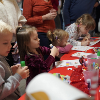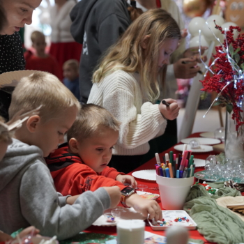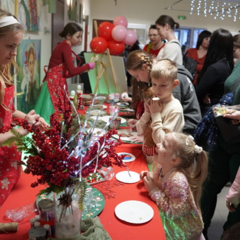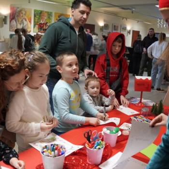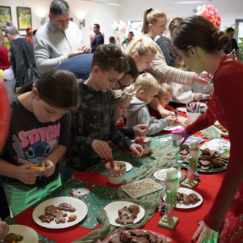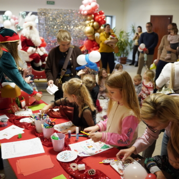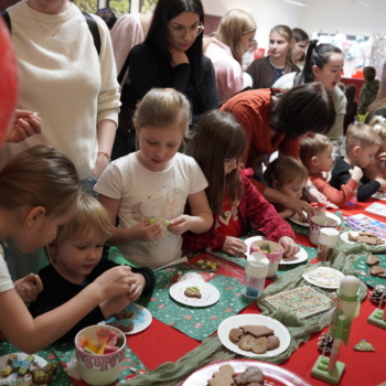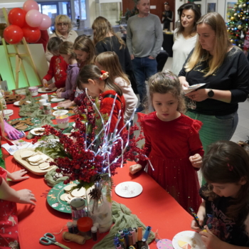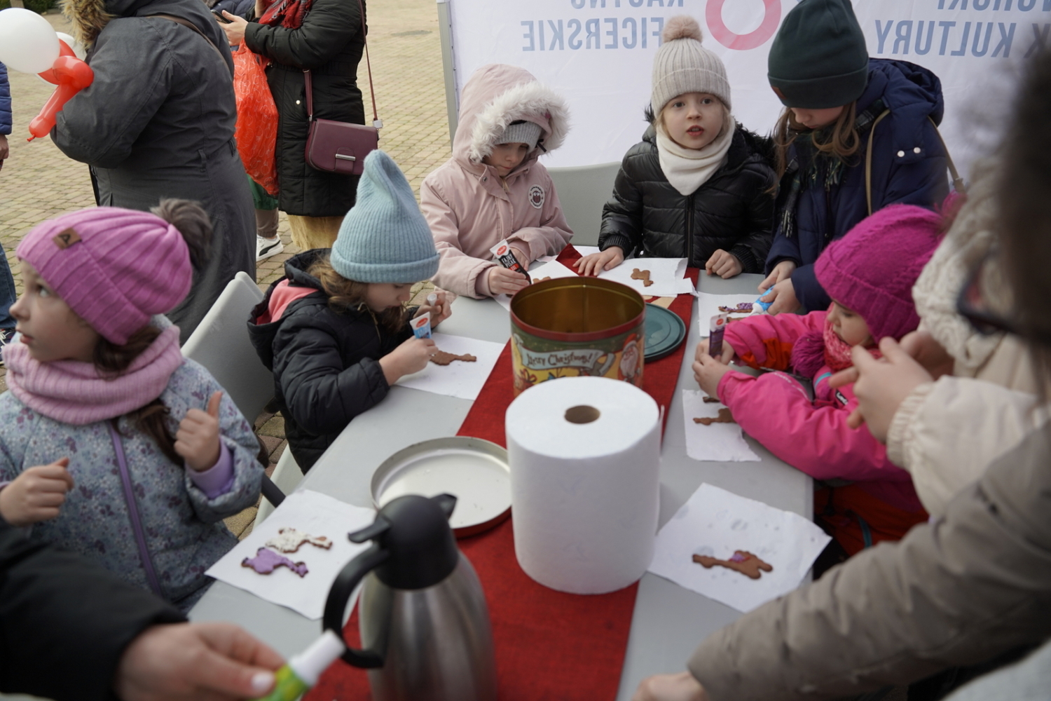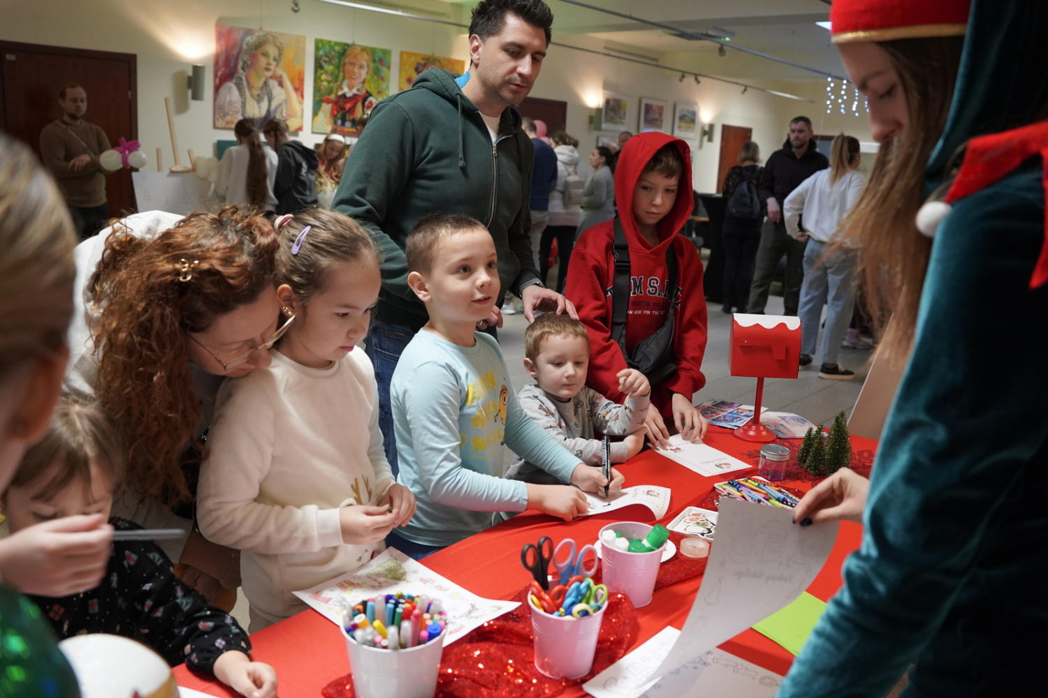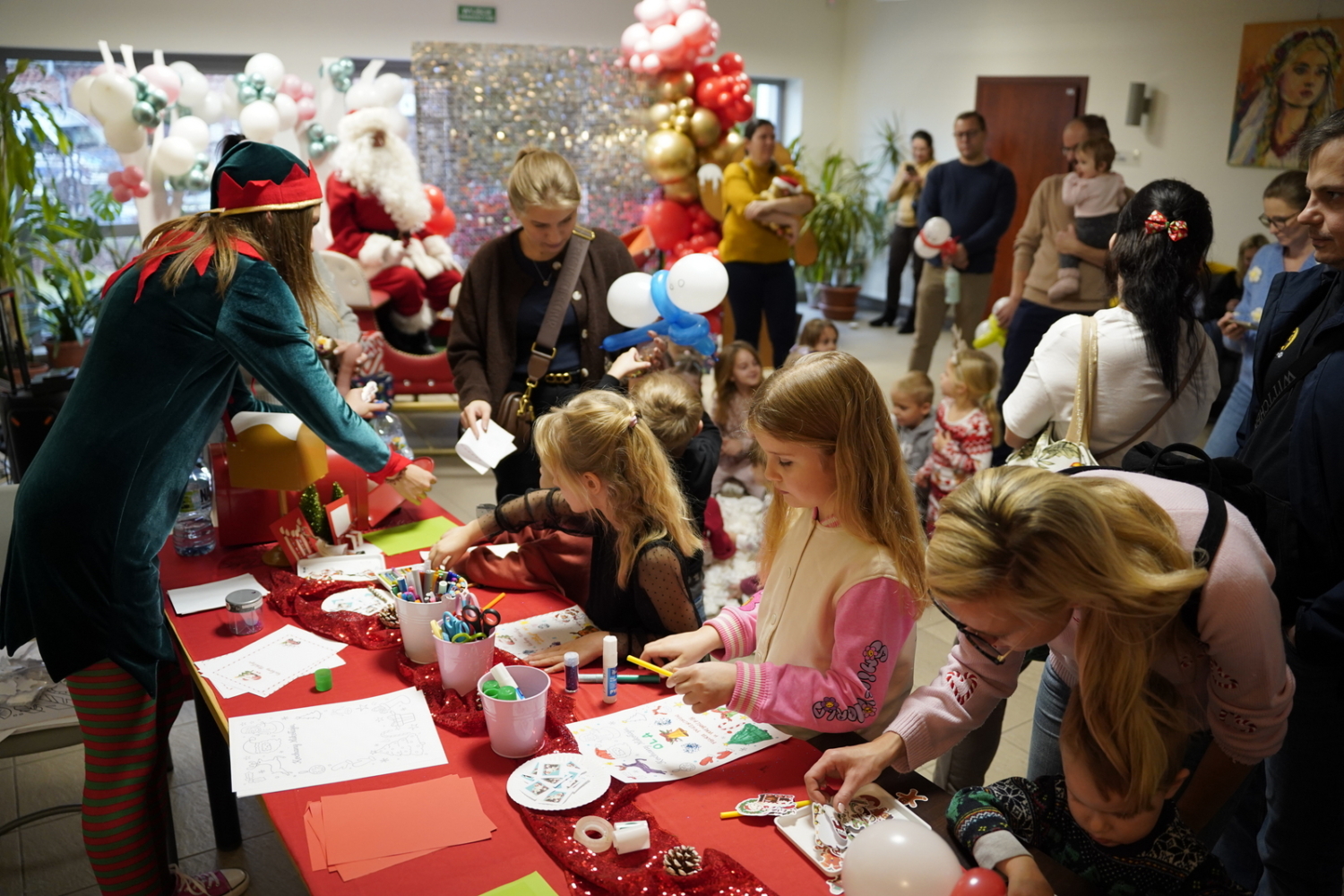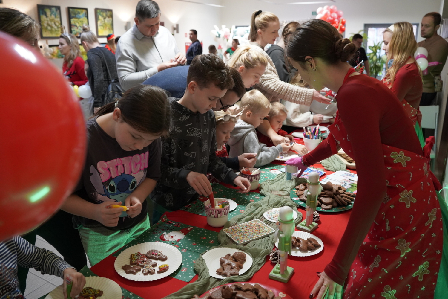 W budynku działała prawdziwa Pracownia Świętego Mikołaja, która zamieniła NOK w tętniący życiem, kolorowy świat pełen kreatywności. Dzieci dekorowały pachnące pierniczki, pisały listy do Świętego Mikołaja, ozdabiały bombki, tworzyły aniołki na choinkę i własnoręcznie robiły świąteczne kartki.