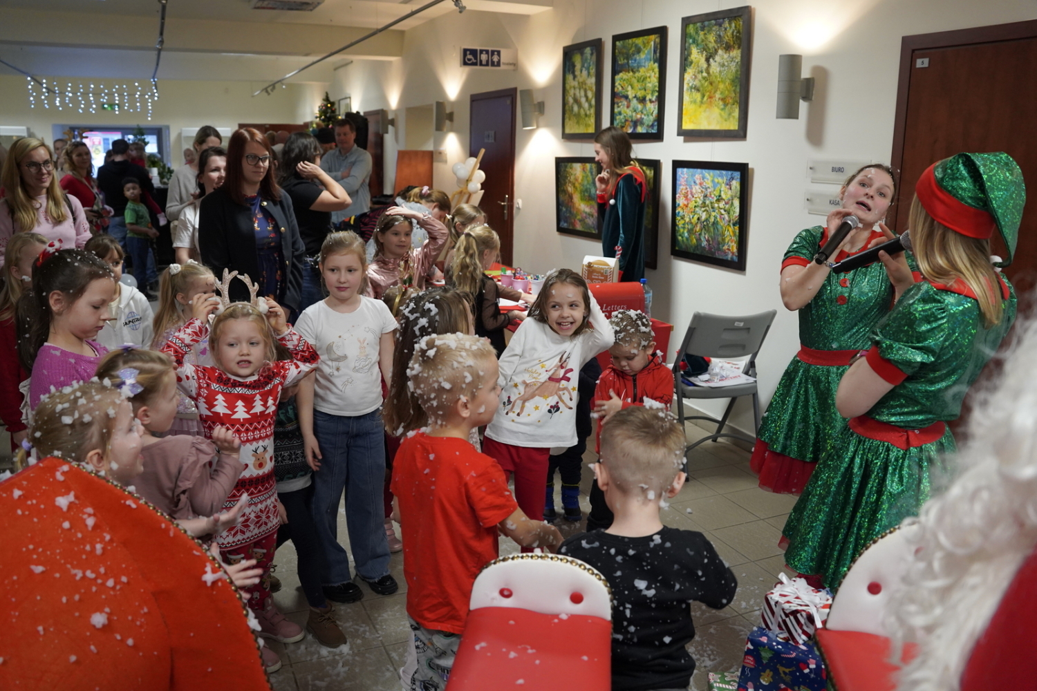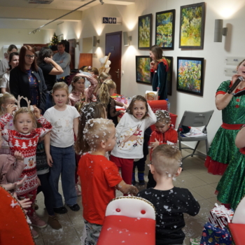 Całemu zamieszaniu towarzyszył Mikołaj, śnieżynki, elfy, taniec, mnóstwo śmiechu i nawet bitwa na śnieżki – oczywiście papierowe, bo pogoda nie zawsze dogaduje się z marzeniami najmłodszych. Nie zabrakło też mikołajowych sań i ukochanego przez wszystkich, przytulaśnego Rudolfa.