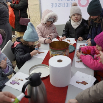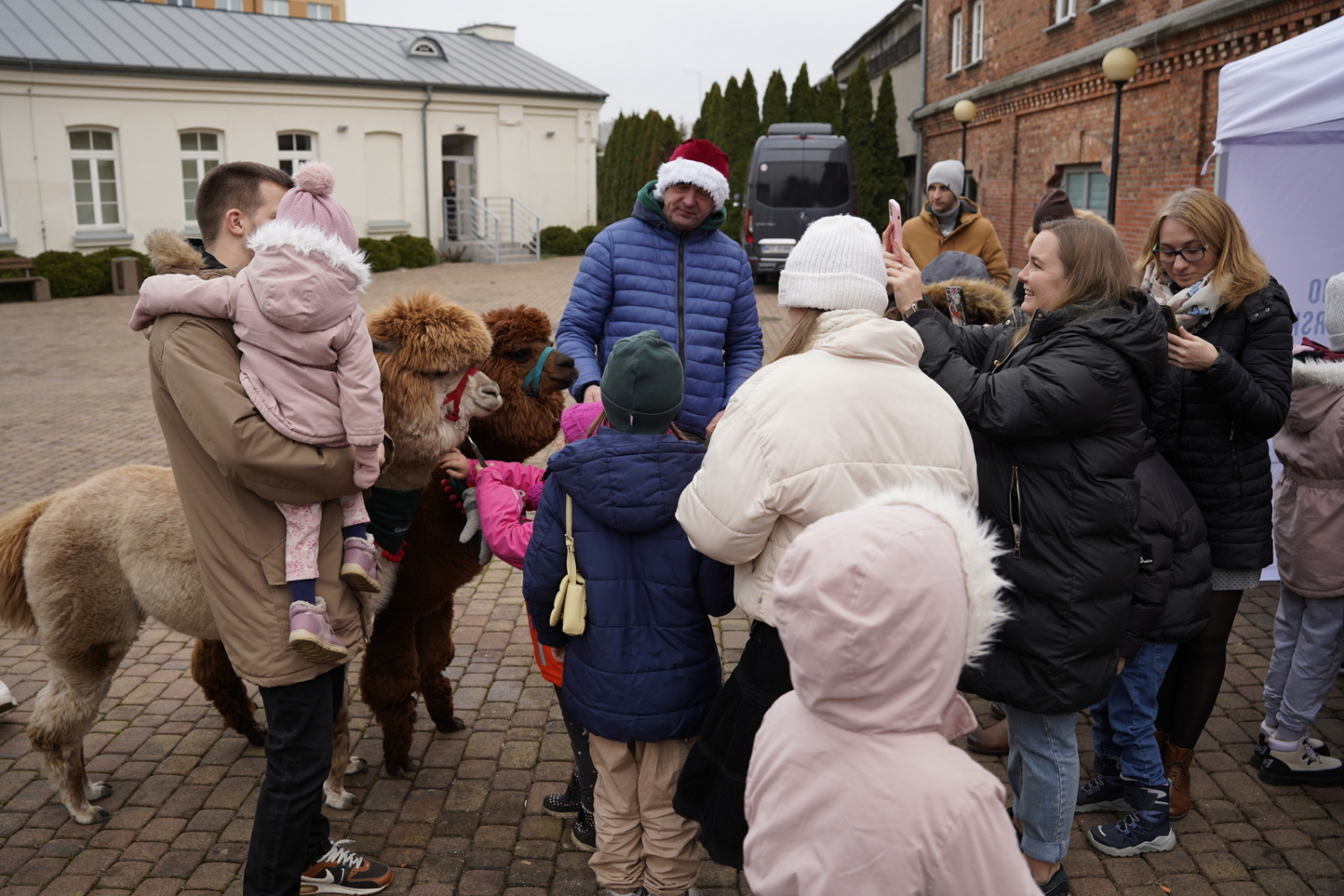 Na dziedzińcu czekała na gości niecodzienna atrakcja – alpaki, które natychmiast skradły serca najmłodszych. Obok nich – przejażdżki retro rowerem, które przyciągały i dzieci, i dorosłych, oraz animacje prowadzone przez szczudlarzy. Dodatkowym hitem okazało się ozdabianie pierniczków w kształcie… alpak!
