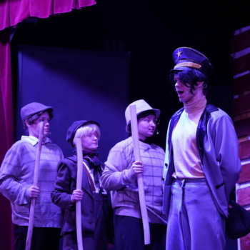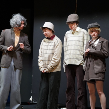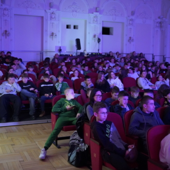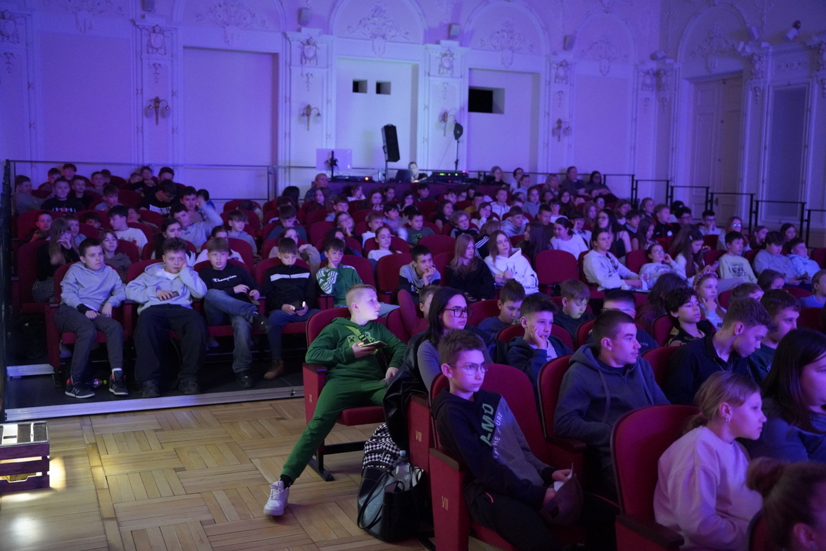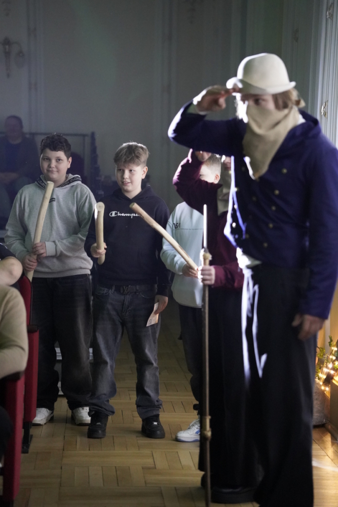 Jako pierwsi na widowni zasiedli uczniowie klas 4–6, dla których zaprezentowano spektakl „Chłopcy z Placu Broni”. Była to dynamiczna i angażująca interpretacja znanej lektury – historii o przyjaźni, odwadze i lojalności. Młodzi widzowie mogli nie tylko śledzić losy bohaterów, ale także poczuć emocje towarzyszące walce o tytułowy plac, który w tej opowieści staje się symbolem wartości i młodzieńczej solidarności.