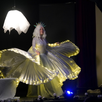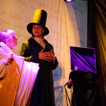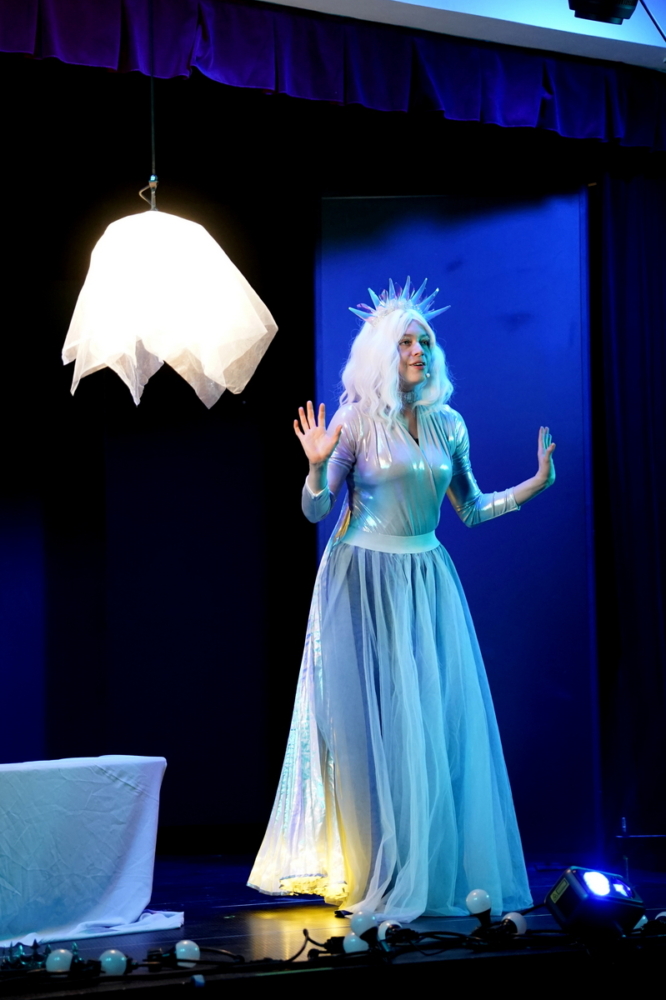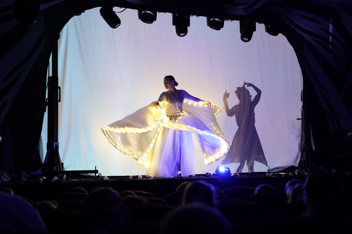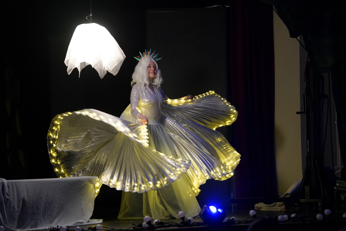 Następnie najmłodsi uczniowie z klas 1–3 przenieśli się do magicznego świata baśni podczas spektaklu „Teatr Cieni Baśni Andersena”. Widowisko połączyło klasyczną grę aktorską z niezwykłą formą teatru cieni, prowadząc młodych widzów przez znane historie Hansa Christiana Andersena, m.in. „Nowe Szaty Króla”, „Małą Syrenkę” czy „Dzielnego Ołowianego Żołnierzyka”. Całość stworzyła pełną wyobraźni i emocji podróż do świata baśni.