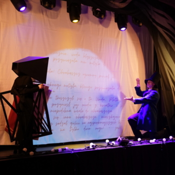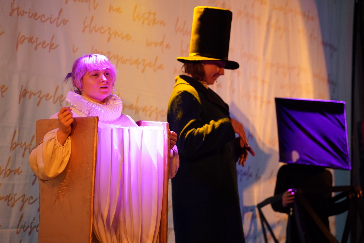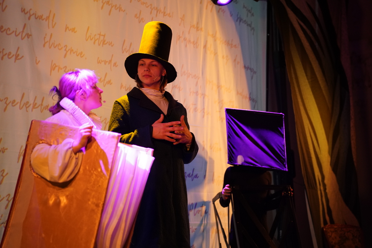 Dzień zakończył spektakl „Balladyna LIVE” skierowany do uczniów klas 7–8. To nowoczesna, pełna energii interpretacja dramatu Juliusza Słowackiego, w której klasyczny tekst został połączony z dynamiczną muzyką, widowiskową scenografią oraz grą świateł. Dzięki temu młodzież mogła zobaczyć znaną lekturę w zupełnie nowym, bardzo sugestywnym wydaniu.