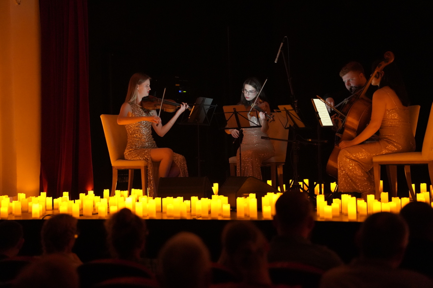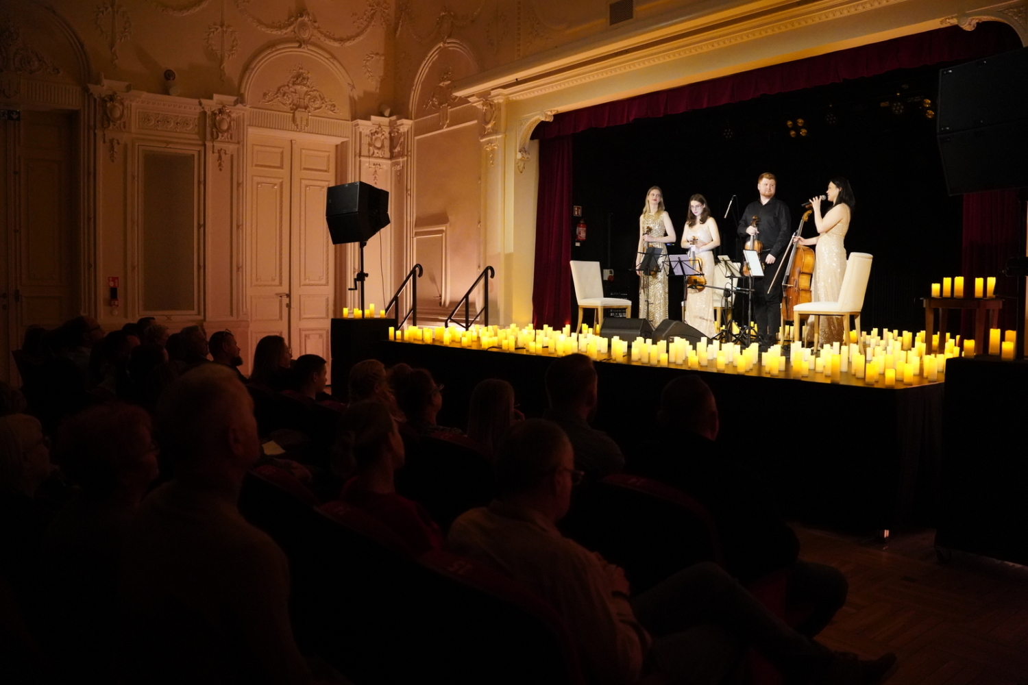 Dzisiejszego wieczoru sala widowiskowa Kasyna Oficerskiego wypełniła się po brzegi, a atmosfera wśród publiczności była absolutnie wyjątkowa. Setki świec, nastrojowe światło i dźwięki kwartetu smyczkowego stworzyły wieczór, który na długo zostanie w pamięci uczestników.