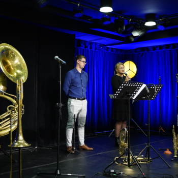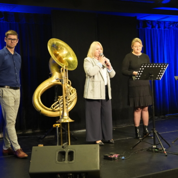 1 października w Nowodworskim Ośrodku Kultury odbyły się aż dwa koncerty z cyklu Muzyka Łączy – osobno dla młodszych i starszych uczniów. Sala wypełniła się dźwiękami instrumentów dętych, a dzieci mogły zobaczyć z bliska budowę m.in. puzonu, saksofonu, suzafonu i innych instrumentów, dowiedzieć się, czym różnią się dęte blaszane od drewnianych, a także w jaki sposób muzycy wydobywają z nich dźwięk.
