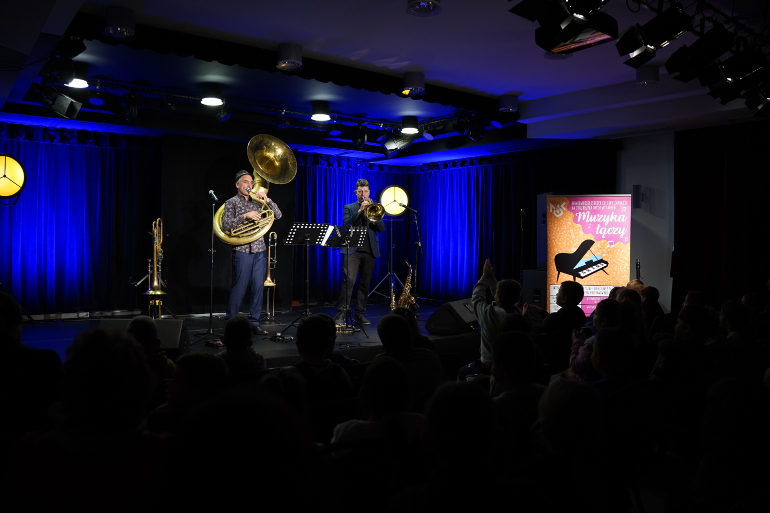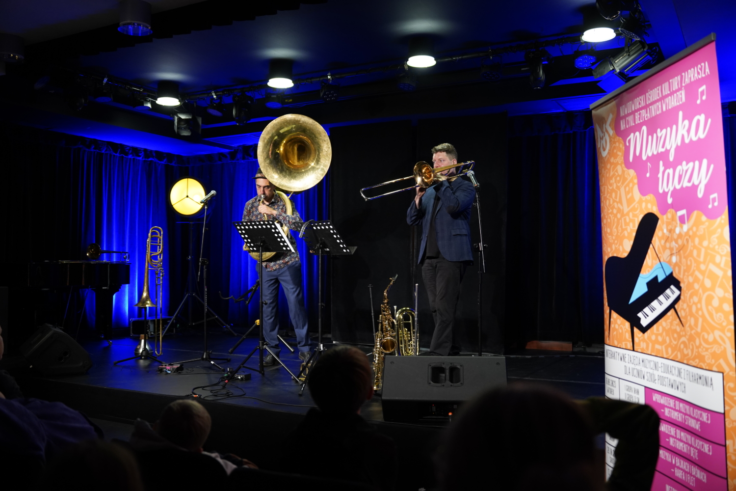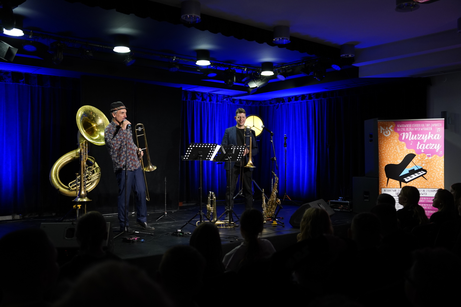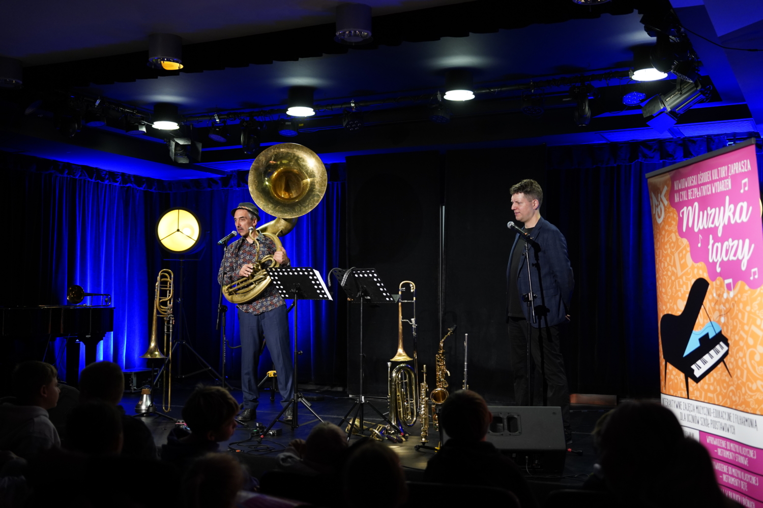 Podczas koncertów zabrzmiały standardy jazzowe oraz muzyka filmowa, w tym słynny motyw z Indiany Jonesa, który wywołał gromkie brawa. Ogromne wrażenie zrobił również monumentalny suzafon, budząc zachwyt wśród publiczności. Dzieci aktywnie uczestniczyły w spotkaniu – zadawały pytania, reagowały na każdy utwór i z wielkim zainteresowaniem odkrywały tajemnice instrumentów. To była prawdziwa lekcja muzyki w najlepszym wydaniu – z pasją, humorem i mnóstwem dobrej energii!