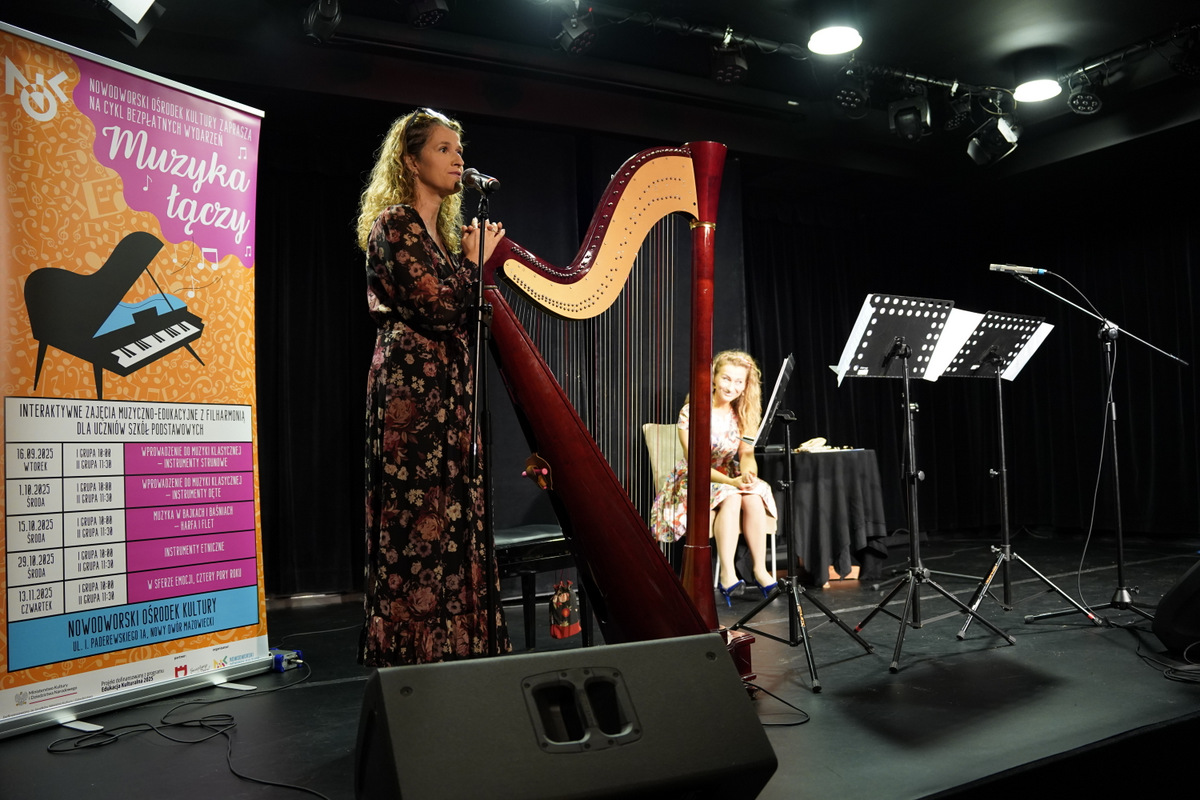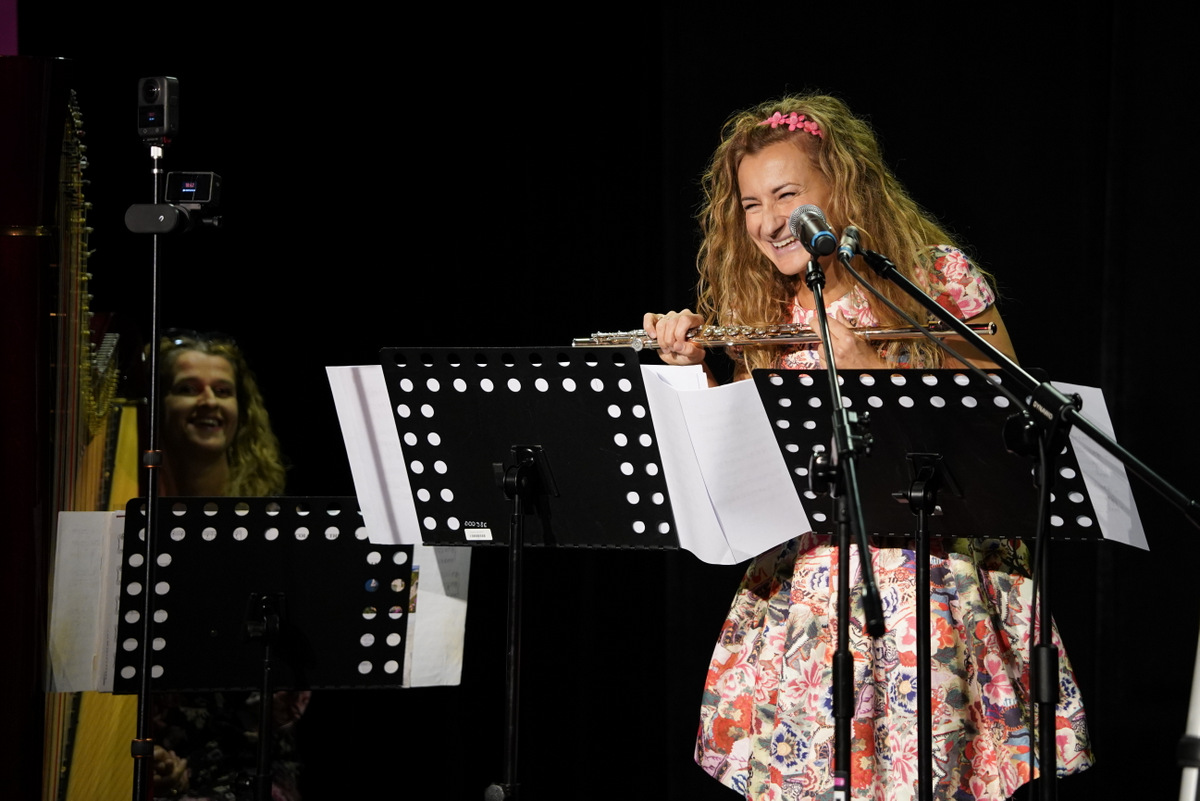 Na scenie wystąpiły dwie wyjątkowe artystki: Urszula Nowakowska – harfistka współpracująca z najważniejszymi orkiestrami w Polsce, m.in. Filharmonią Narodową, Sinfonią Varsovią i Polską Operą Królewską, oraz Marcelina Sankowska – flecistka, solistka i edukatorka związana z Filharmonią Narodową i Warszawskim Towarzystwem Muzycznym.