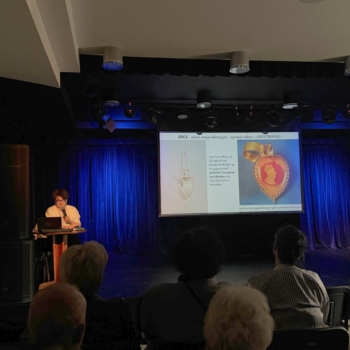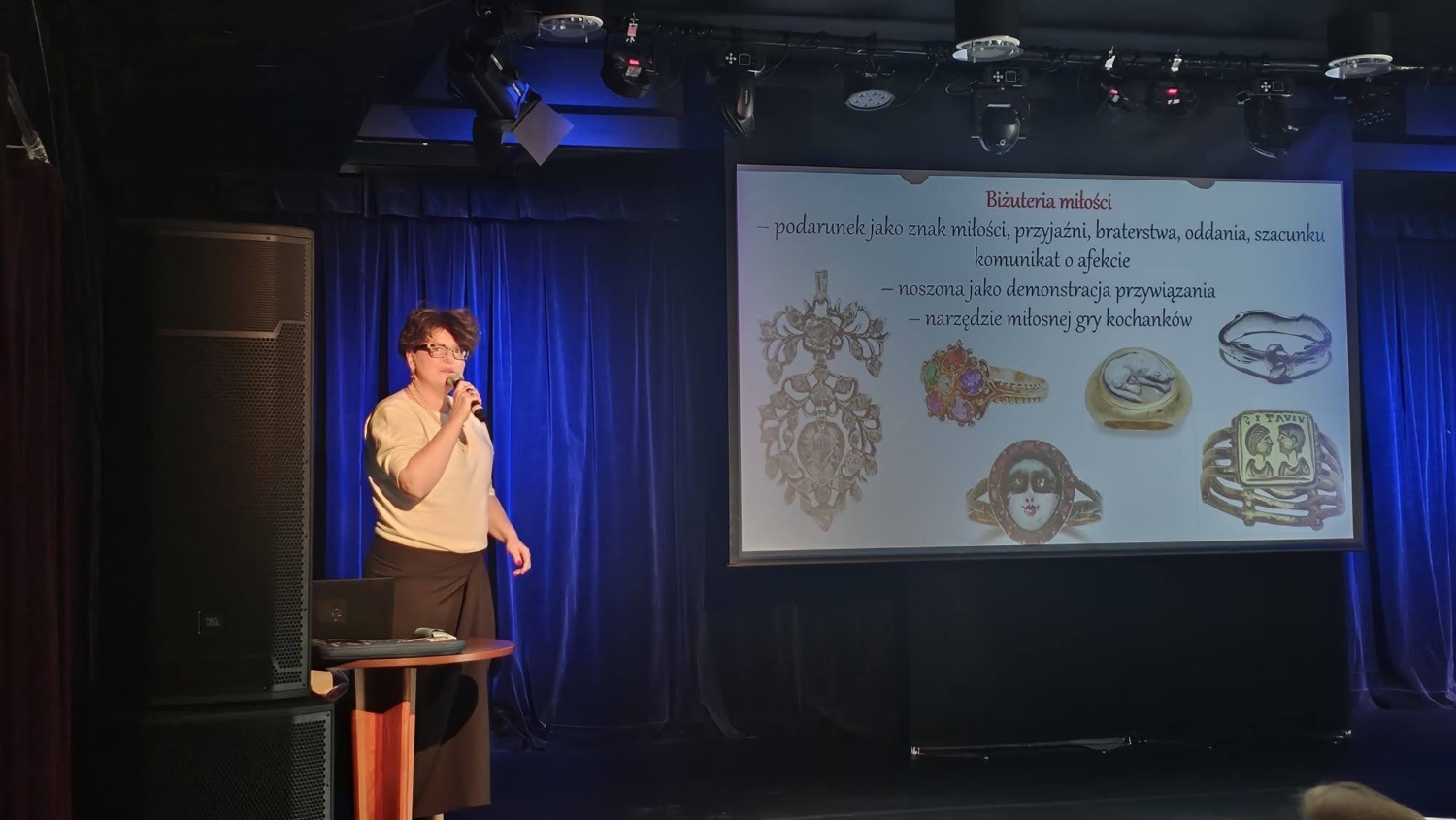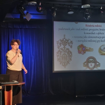Gościem Specjalnym wieczoru była dr hab. Małgorzata Wrześniak – historyk sztuki, kulturoznawca i tłumacz, autorka ponad 100 publikacji naukowych. Wygłosiła prelekcję zatytułowaną „Miłosne komunikaty w biżuterii i dodatkach”, poświęconą manifestowaniu uczuć za pośrednictwem przedmiotów dekoracyjnych – biżuterii, wachlarzy, brykli i muszek. Opowieść o miłości uwiecznionej w pięknych i drogocennych wyrobach rzemiosła artystycznego spotkała się z dużym zainteresowaniem zebranych.