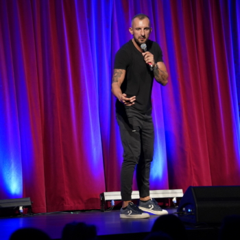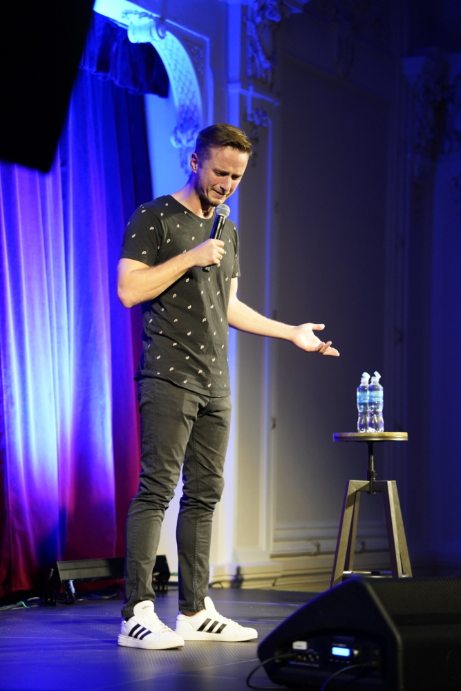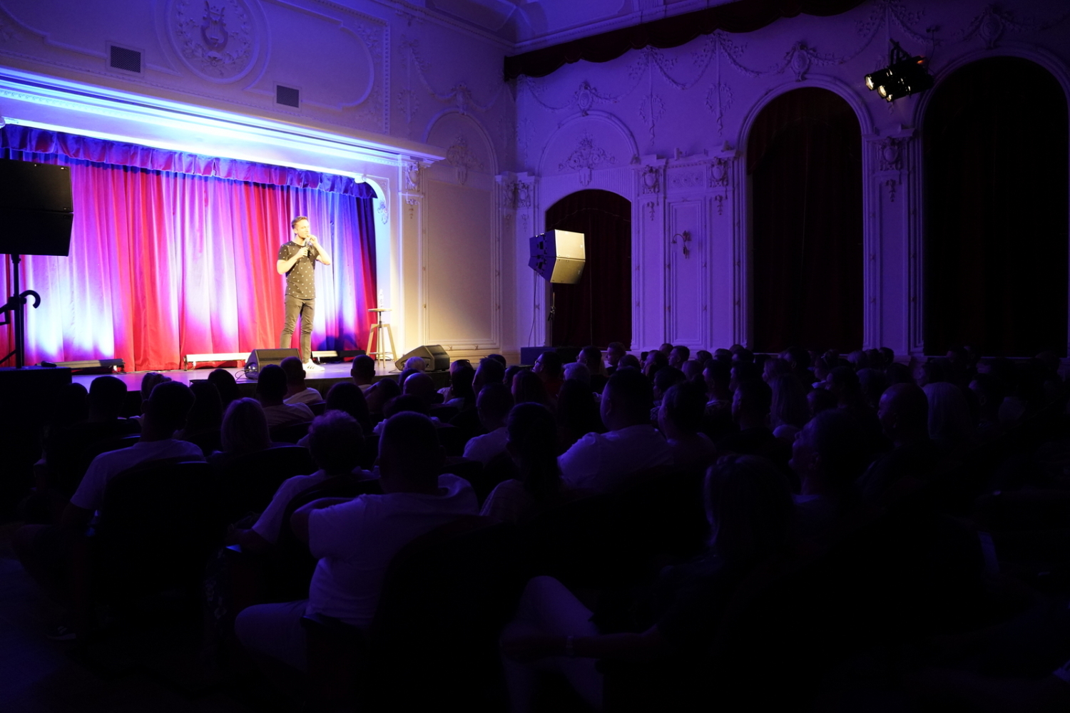 Wczoraj nasza sala teatralno-kinowa Kasyna Oficerskiego wypełniła się po brzegi miłośnikami dobrego humoru. Na scenie pojawił się Piotr Zola Szulowski, który zaprezentował testy swojego najnowszego programu stand-up’owego.