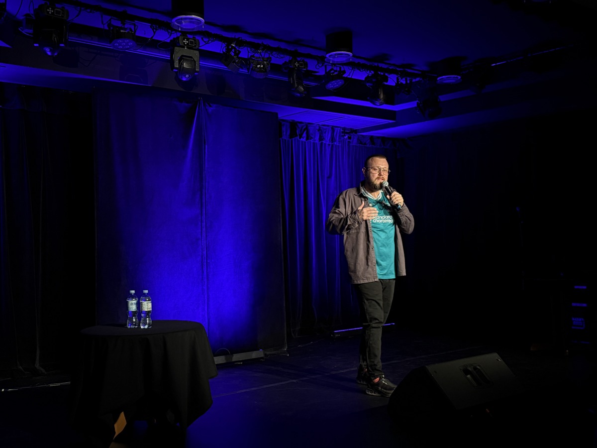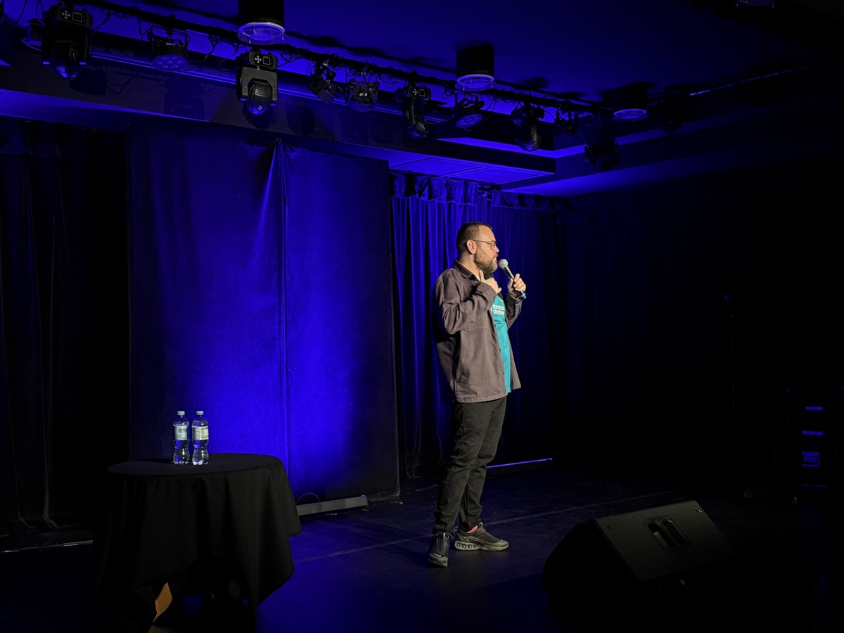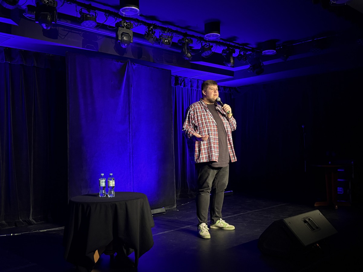 Główną gwiazdą wieczoru był Michał Kutek – komik z Poznania, który zanim stanął na scenie, pracował jako adwokat. Dziś od ponad 12 lat udowadnia, że sala sądowa to nie jedyne miejsce, gdzie można celnie punktować rzeczywistość.