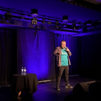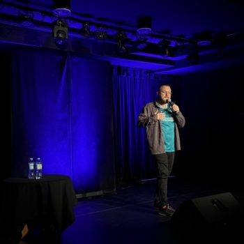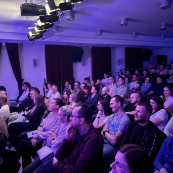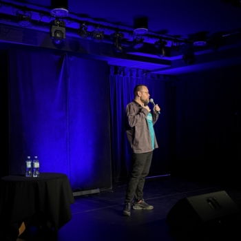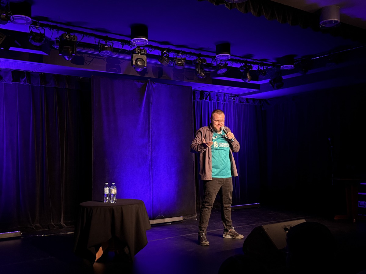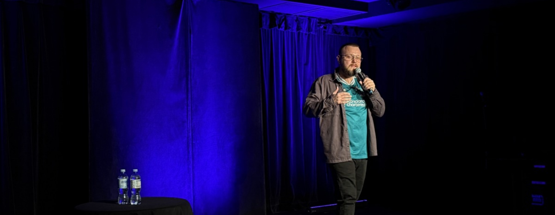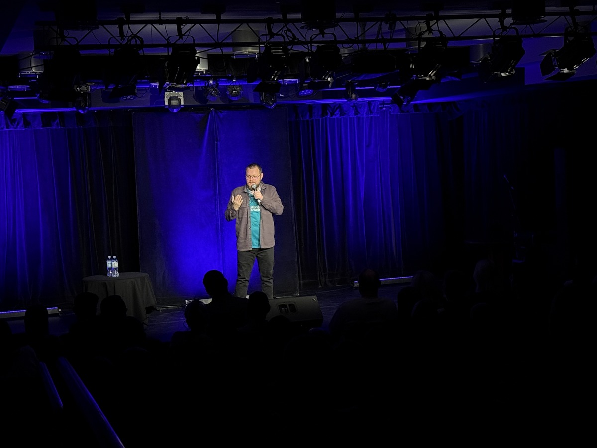 Główną gwiazdą wieczoru był Michał Kutek – komik z Poznania, który zanim stanął na scenie, pracował jako adwokat. Dziś od ponad 12 lat udowadnia, że sala sądowa to nie jedyne miejsce, gdzie można celnie punktować rzeczywistość.