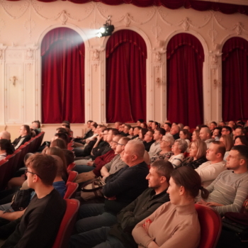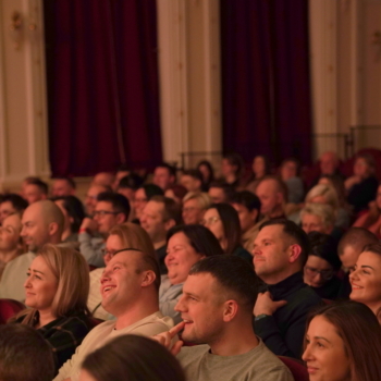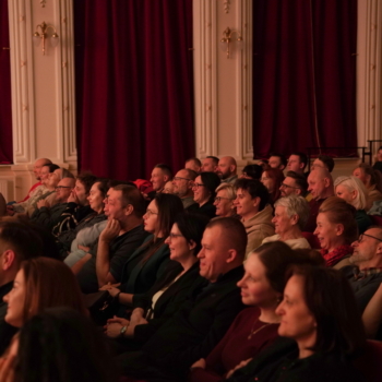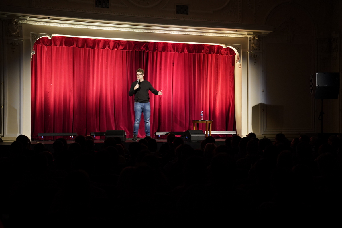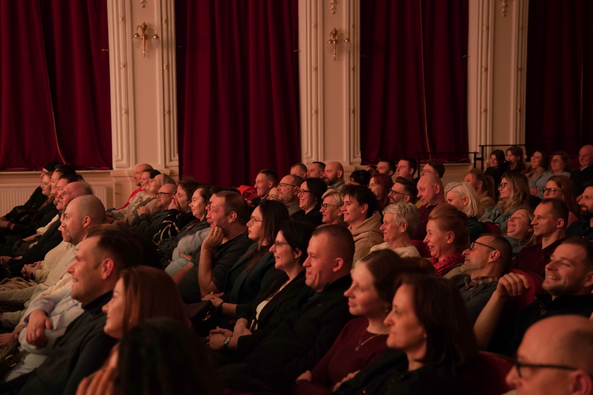 Na sali co chwilę wybuchały salwy śmiechu, a publiczność reagowała żywo na każdy żart.