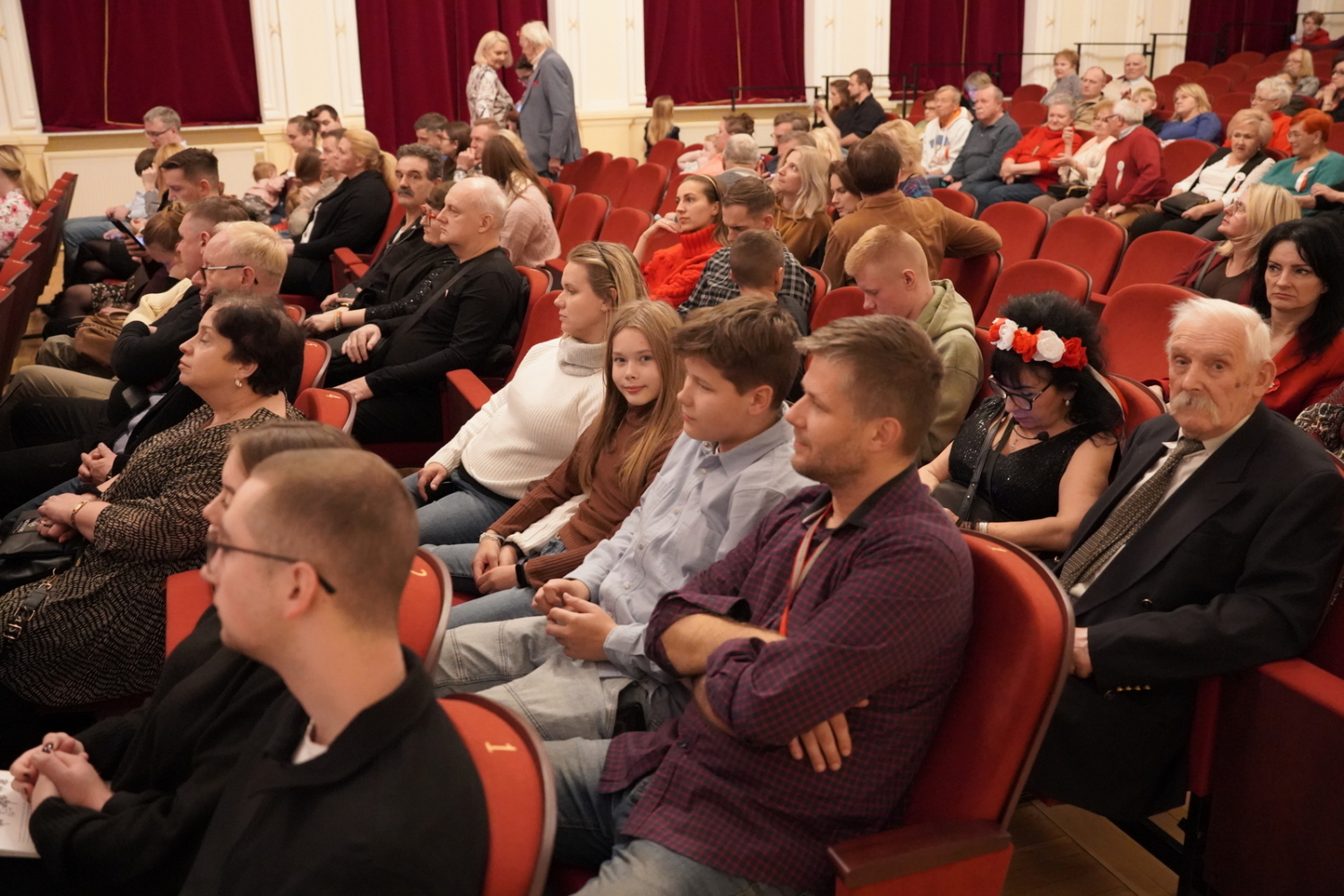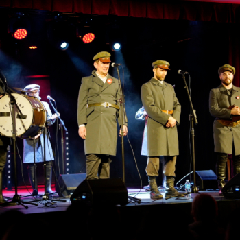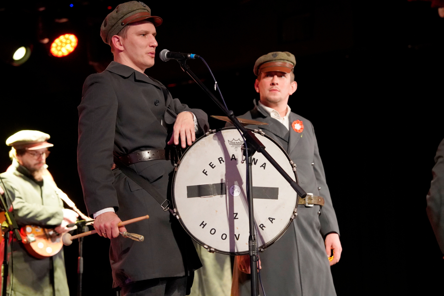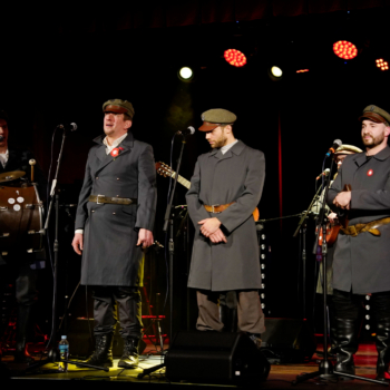 Wieczór zwieńczył koncert zespołu Ferajna z Hoovera – grupy, która z pasją łączy muzykę i historię. Ich występ był nie tylko muzycznym przeżyciem, ale też lekcją patriotyzmu w najlepszym wydaniu. Publiczność śpiewała razem z zespołem, a największą radością była aktywność dzieci i młodzieży, które doskonale znały wykonywane pieśni. Wspólny śpiew powstańczych i legionowych melodii wypełnił salę emocjami i stworzył niezwykłą więź między pokoleniami.