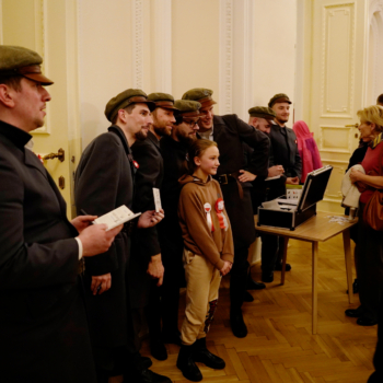 Wielu uczestników skorzystało też z możliwości zwiedzania Kasyna Oficerskiego z przewodnikiem, panią Janiną Bystrek. W trakcie spaceru po zabytkowych wnętrzach, w sali balowej można było podziwiać wyjątkową wystawę „TRZY RZEKI – jak długo Wisła wodę na Bałtyk będzie słać…”, ukazującą pejzaże i historyczne budynki Twierdzy Modlin – miejsca, które od wieków splatają się z losami kraju.