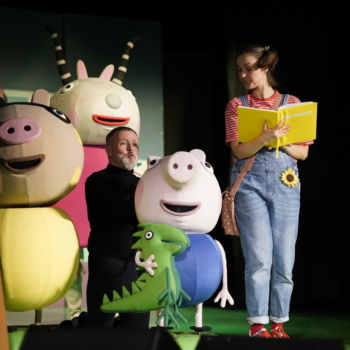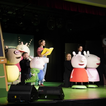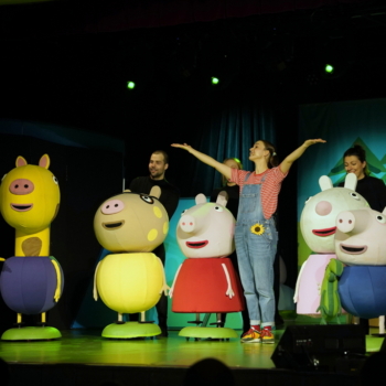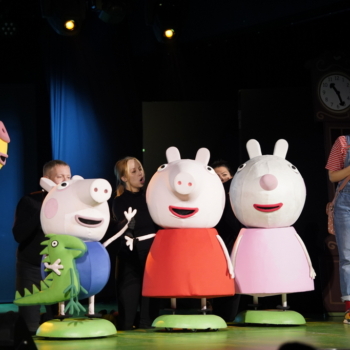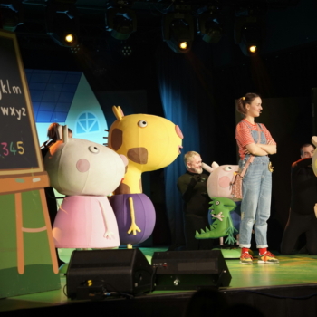 Spektakl „Przygody Świnki Peppy” zabrał dzieci na pełną emocji wyprawę do lasu. Peppa, George i cała paczka szkolnych znajomych odkrywali przyrodę, bawili się na świeżym powietrzu, śpiewali i oczywiście… skakali w błotnych kałużach!