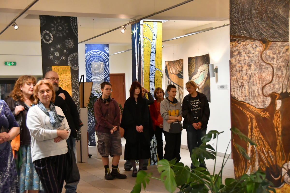 To było niezwykle inspirujące spotkanie ze sztuką – przestrzeń galerii wypełniły przepiękne, wielkoformatowe batiki, które zachwycają kolorem, światłem i precyzją wykonania. Ich monumentalny charakter sprawia, że prezentują się w Galerii Łącznik naprawdę imponująco.