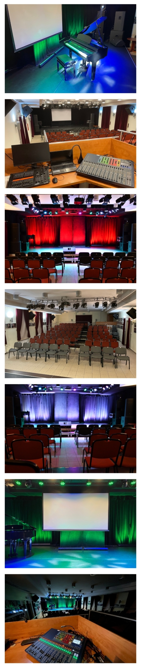 wysokość: 2,8m (światło sceny), 3,2m (wysokość wewnątrz do sztankietów oświetleniowych)