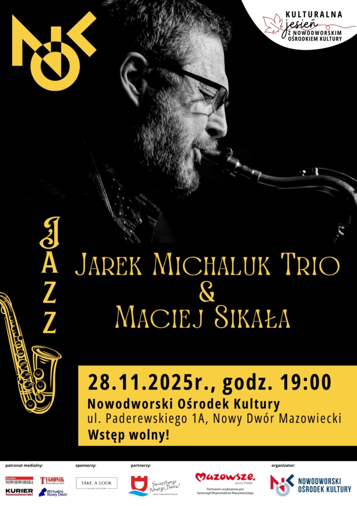 Nowodworski Ośrodek Kultury zaprasza na koncert jazzowy Jarek Michaluk Trio & Maciej Sikała.