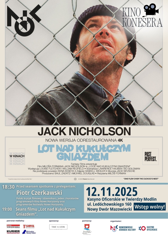 Zapraszamy na seans kultowego filmu „Lot nad kukułczym gniazdem” Miloša Formana – w nowej, odrestaurowanej wersji 4K, z okazji 50. rocznicy premiery!