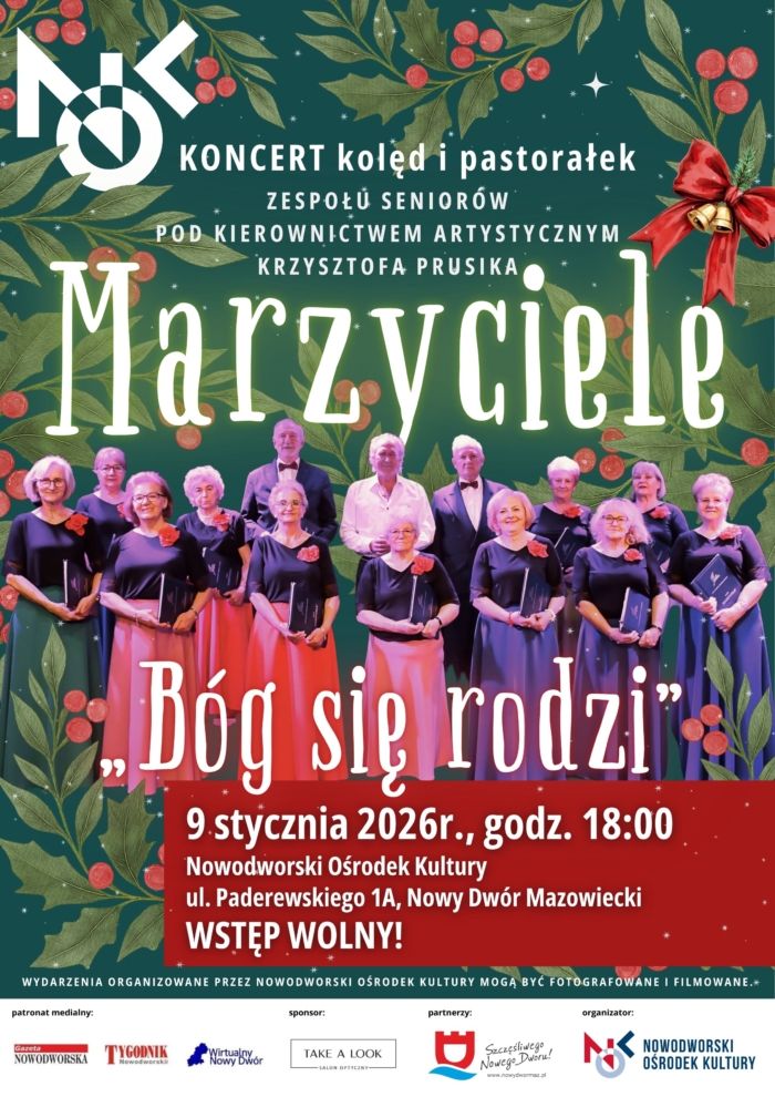 Zapraszamy na koncert kolęd i pastorałek w wykonaniu naszego zespołu seniorów MARZYCIELE pod kierownictwem artystycznym Krzysztofa Prusika.
