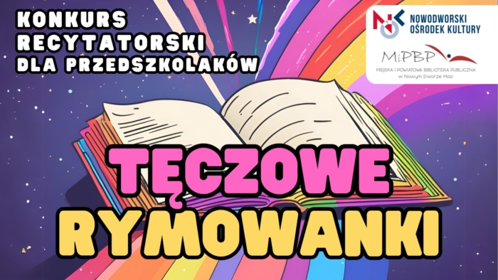 Serdecznie zapraszamy do udziału w X edycji Konkursu Recytatorskiego Przedszkolaków „Tęczowe Rymowanki”, organizowanego przez Nowodworski Ośrodek Kultury oraz Miejską i Powiatową Bibliotekę Publiczną w Nowym Dworze Mazowieckim.